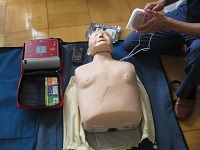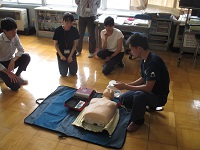 人命救急の方法を教わり,実際に体験したり,松波小学校に置いてあるAEDの中身の確認をしたりしました。