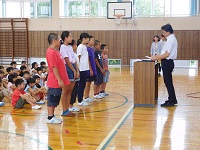 表彰された子どもたちは,元気いっぱい返事をすることができました。