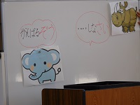 教頭先生の話では,「がんばるゾウ」と「・・・・しなサイ」が登場し,みんなはどっちが好きかを考えました。