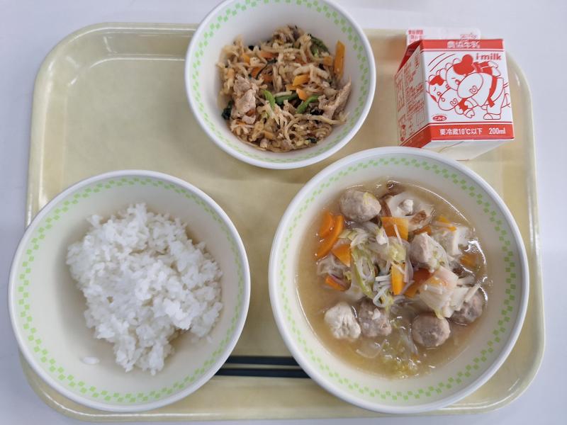 ごはん(会津若松産) とり野菜みそ鍋 切り干し大根のピリ辛炒め 牛乳