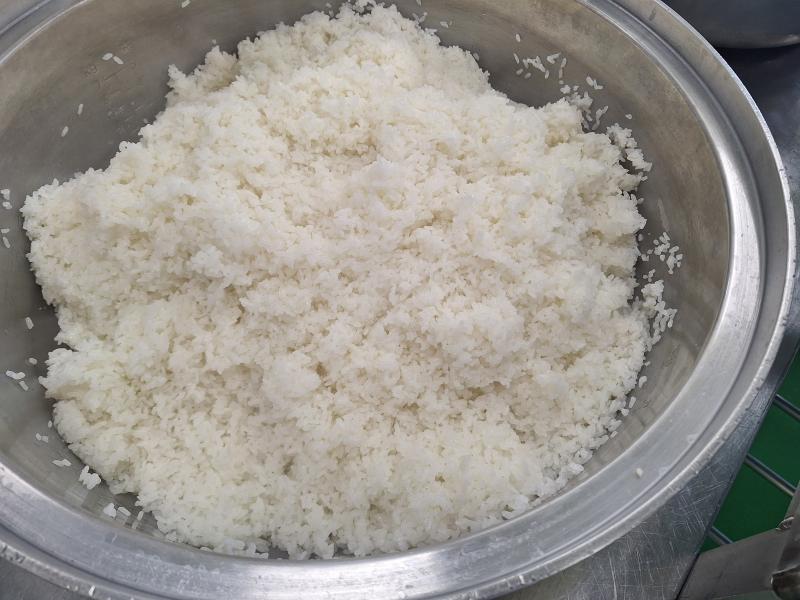 新米と聞いていたため、水の量を少し減らして、ごはんがやわらかくなりすぎないことを願いながら調理場の炊飯器で炊きました。