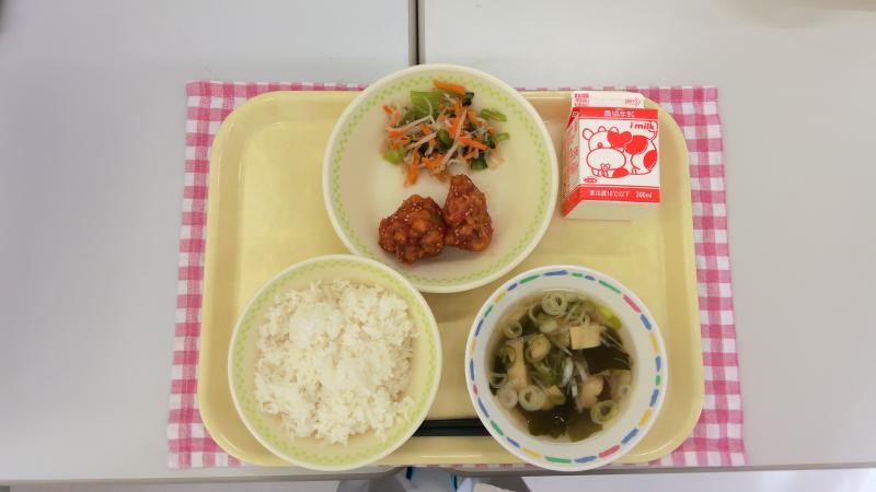 今日は給食で「ヤンニョムチキン」をはじめてつくってみました。ヤンニョムチキンは韓国料理のひとつで、「ヤンニョム」とは韓国語で「合わせ調味料」のことを意味するそうです。韓国の甘辛い調味料であるコチュジャンに今日は食べやすくなるようにケチャップも加えて、給食オリジナルのヤンニョムを作ってみました。味見をしたらとてもおいしかったので、こどもたちの反応が楽しみです