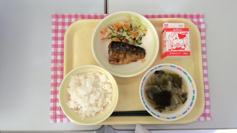 ごはん さばの生姜煮 ごま酢和え みそ汁 牛乳