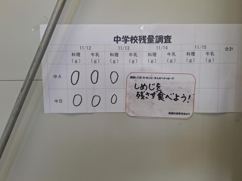 今週は中学校では保健給食委員会による残量調査期間中です。ここまで残量ゼロが続いています
