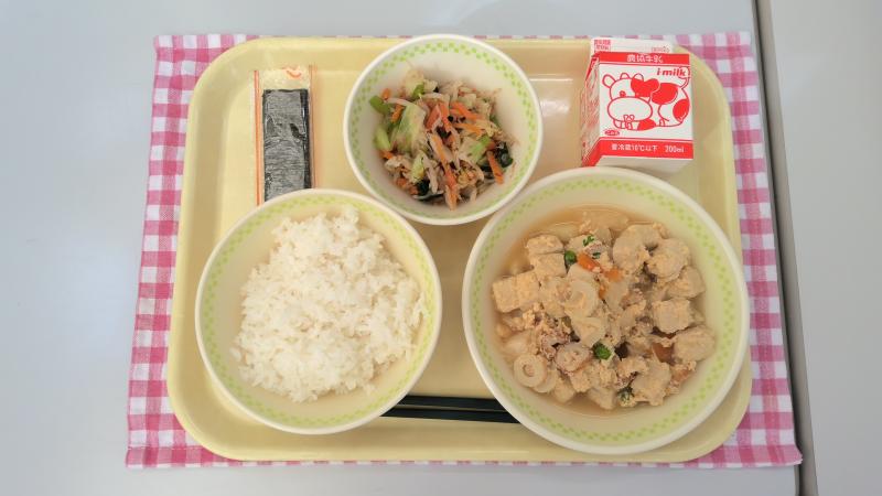 ごはん のり 高野豆腐の卵とじ おかか和え 牛乳
