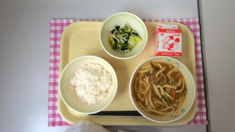 今日はカレーうどんです。今週にはいり、一段と寒くなったので今日の天気にはぴったりなメニューとなりました。