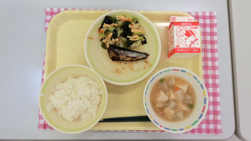 ごはん いわしの生姜煮 五色和え だいこんのそぼろ煮 牛乳
