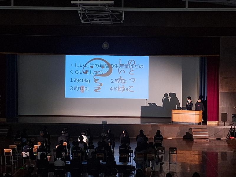 総合の学習の時間に能登の食材について調べていた2年生の授業に以前お邪魔させていただき、普段はきくことができないしいたけの生産のことについて一緒にお話をうかがいました。
