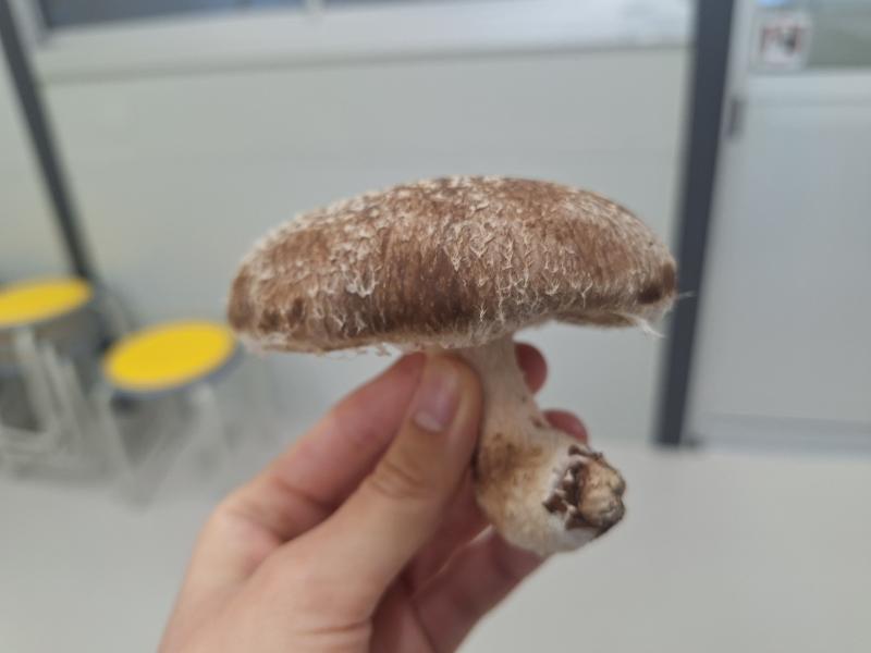 「変形しいたけ」と聞いていましたが、とてもしいたけのかさが大きく、厚みのあるしいたけをたくさんいれていただきました切るのがもったいないくらい立派なしいたけでしたが、いつもよりも少し厚めにスライスしてハヤシライスにつかってみました。しいたけのプリっとした食感とうまみがたくさんつまったおいしいハヤシライスができあがりました。しいたけが苦手な子もたくさんおかわりをしてくれてとても子供たちも喜んでいました