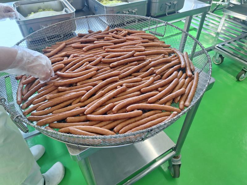 今日はセルフホットドックの日です。ホットドック用に長いソーセージを今日は回転釜で蒸して調理してみました。1本も折れることがなくあつあつのウインナーが蒸しあがりました