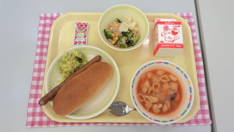セルフホットドック 花野菜サラダ ミネストローネ 牛乳