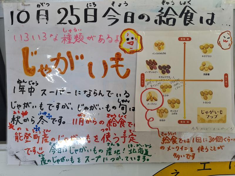 じゃがいもにはいろいろな種類があることをまとめたものを今日はランチルーム前に掲示してみました