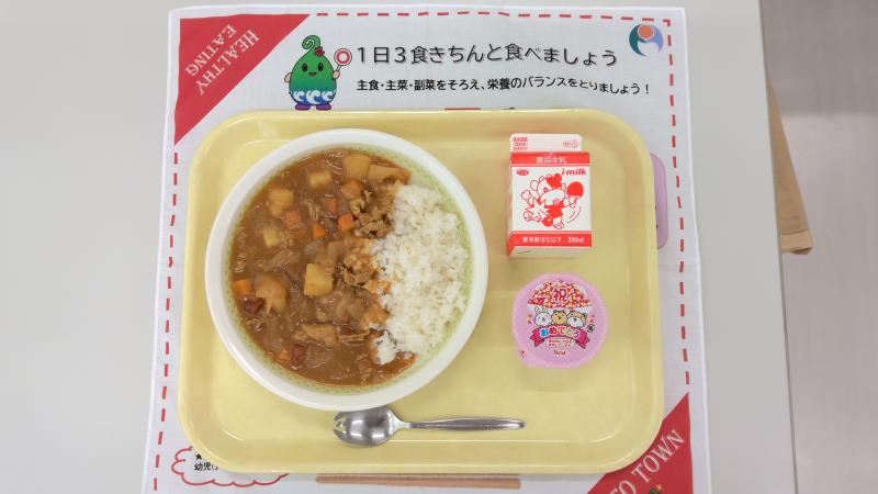 カレーライス お祝いデザート 牛乳