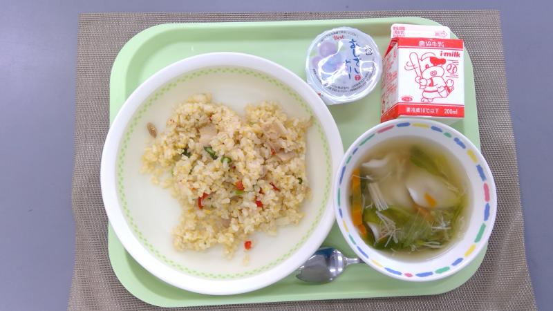 チャーハン 水餃子スープ あじさいゼリー 牛乳