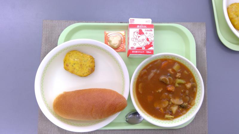 コッペパン ブラウンシチュー 若鶏のピカタ チーズ 牛乳