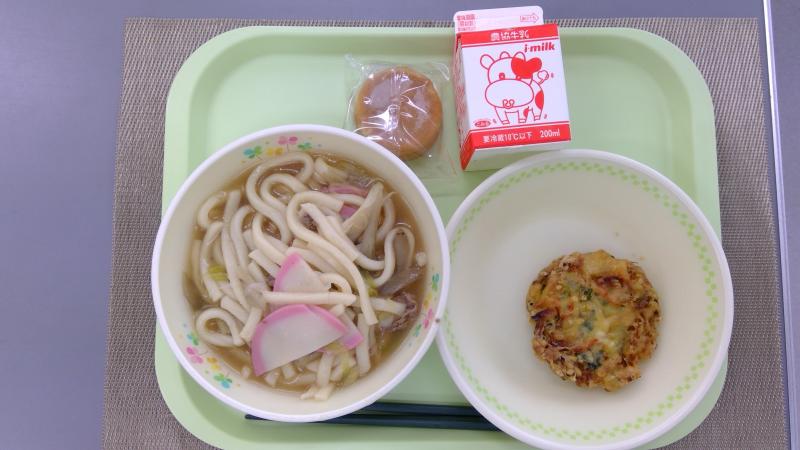 肉うどん 野菜かきあげ 今川焼き 牛乳