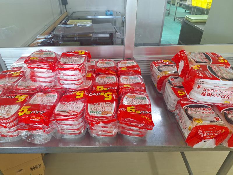 パックごはんは3月までにいただていた支援物資を使いました。日頃から備えておくの大切さが今日は生かされました。