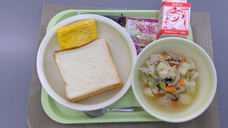 食パン チョコクリーム ポトフ ハムチーズオムレツ いもけんぴパリッシュ 牛乳