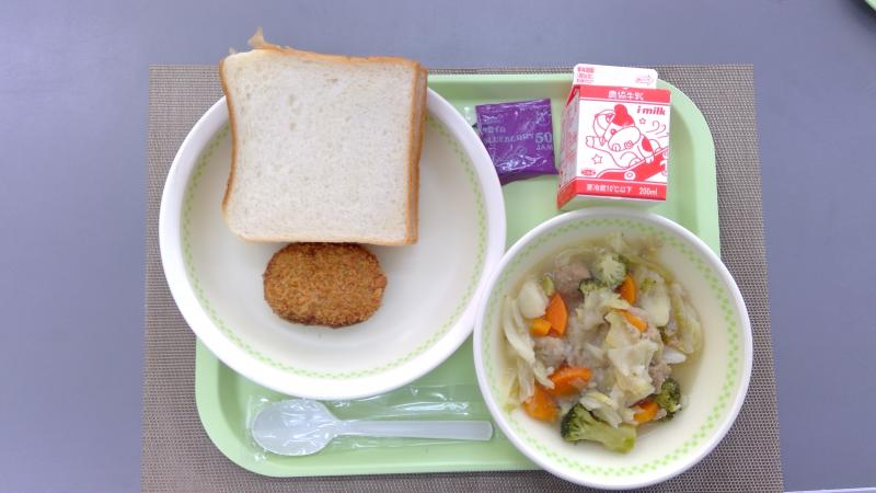 食パン ブルーベリージャム ポトフ コロッケ 牛乳