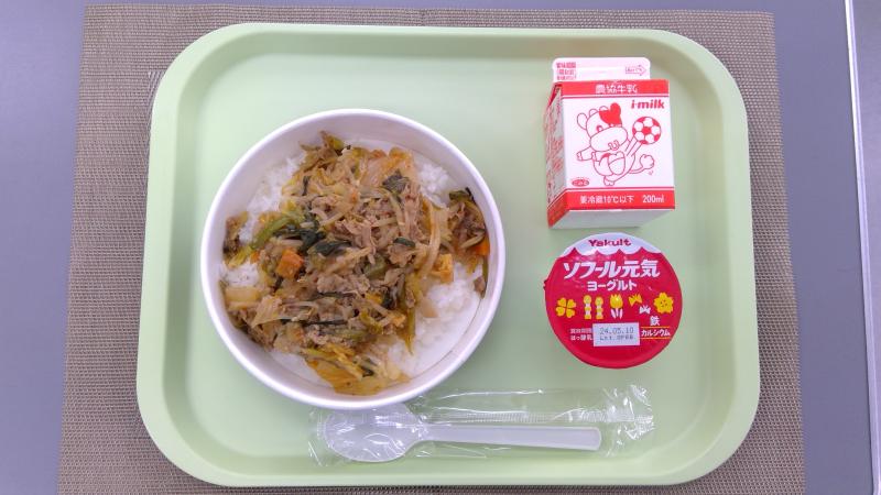 豚キムチ丼 ヨーグルト 牛乳