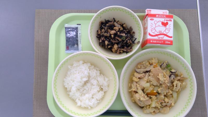 ごはん のりの佃煮 車麩の卵とじ ひじきの炒め煮 牛乳