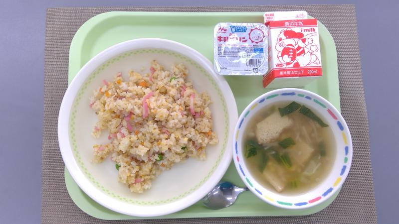 チャーハン 中華スープ 牛乳プリン 牛乳