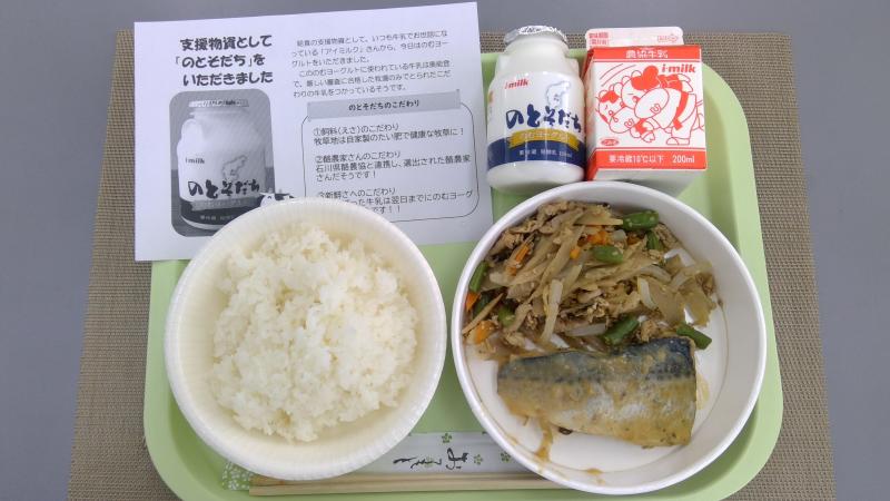 今日は支援物資として牛乳でお世話になっているアイミルクさんからのむヨーグルトをいただきました。