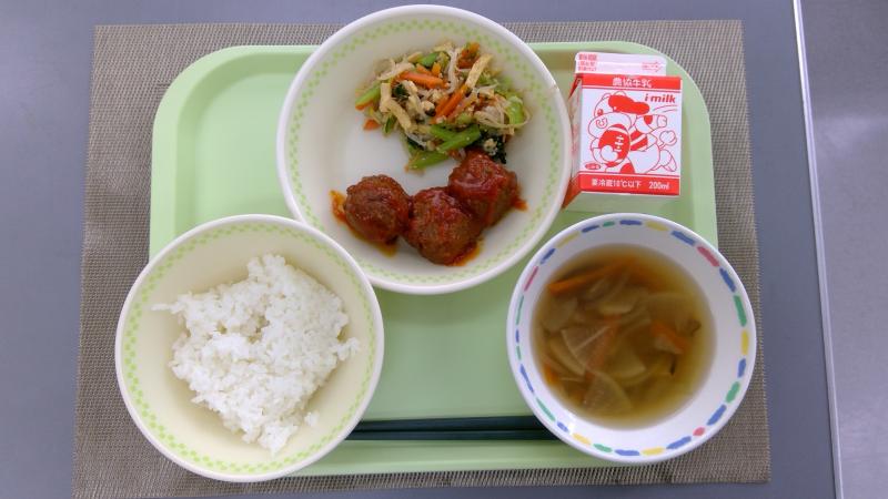ごはん 肉団子ケチャップあん ナムル 大根スープ 牛乳
