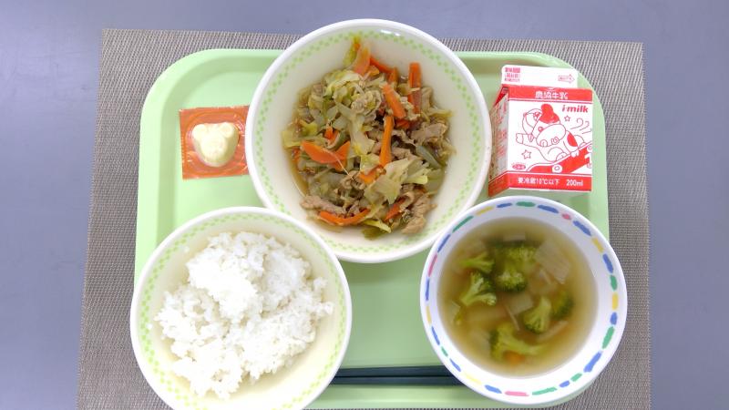 ごはん 豚肉のカレーソテー ポテトスープ チーズ 牛乳
