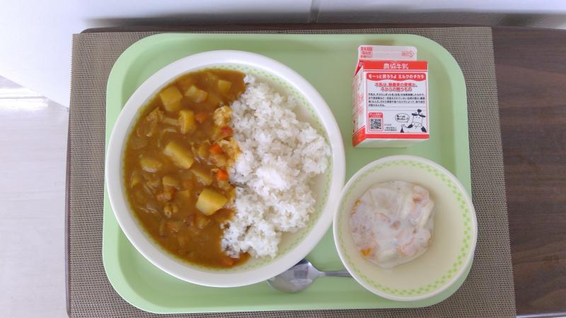 いざというときのために日頃から訓練や備えをしておくことが大切です。今日の給食は災害時でもしっかり栄養がとれるカレーライスと、家でも備蓄できるフルーツ缶を使ったフルーツヨーグルトです。