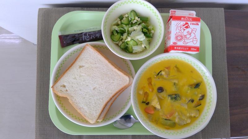 食パン チョコクリーム パンプキンシチュー グリーンサラダ 牛乳