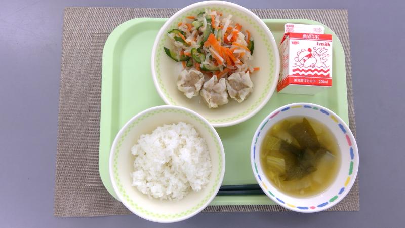 ごはん シューマイ 切干大根のあえ物 味噌汁 牛乳
