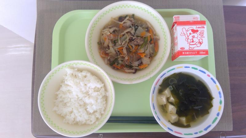ごはん プルコギ炒め わかめスープ 牛乳