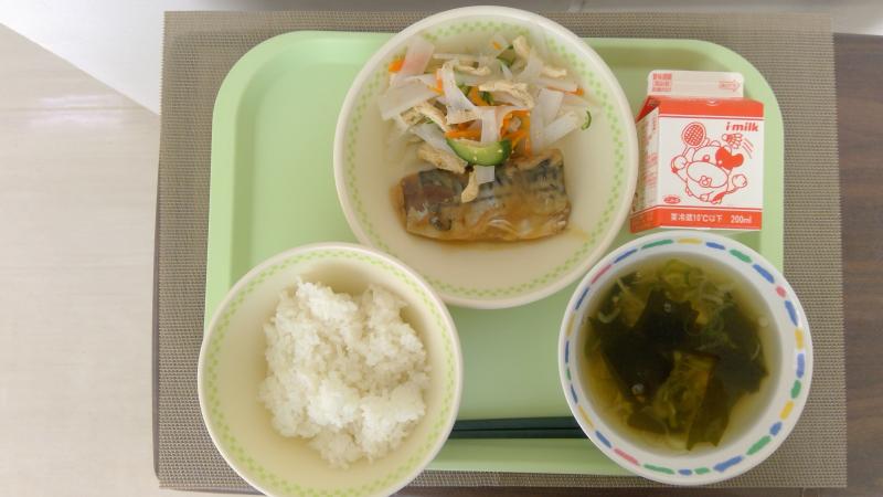 ごはん さばの味噌煮 大根なます すまし汁 牛乳