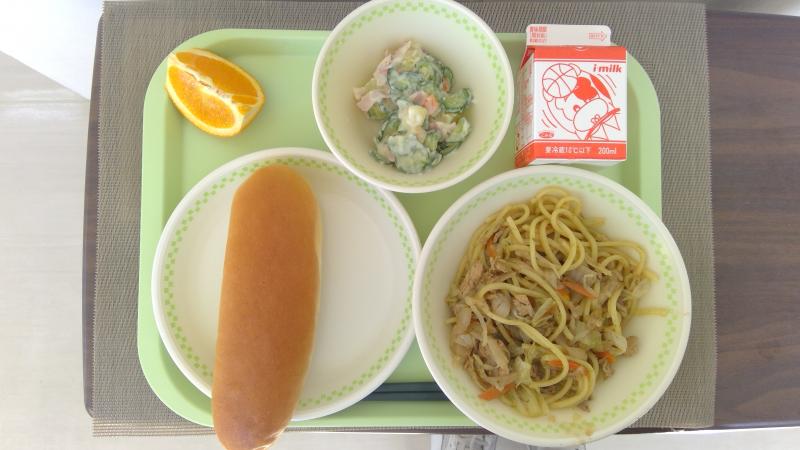 コッペパン 焼きそば ハーフポテトサラダ オレンジ 牛乳