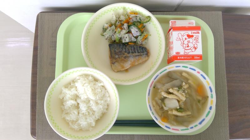 ごはん さばのみそ煮 ゆかり和え けんちん汁 牛乳