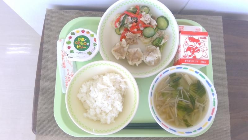 ごはん 蒸しシューマイ 冷しゃぶサラダ 中華スープ 牛乳