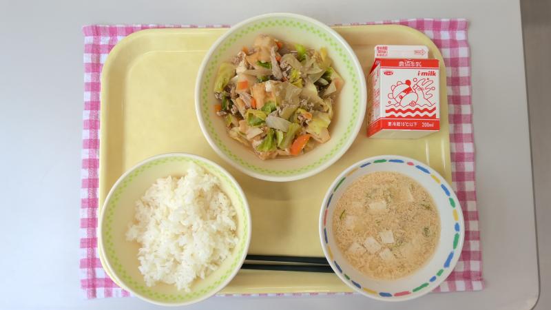 ごはん 厚揚げのみそ炒め 卵スープ 牛乳