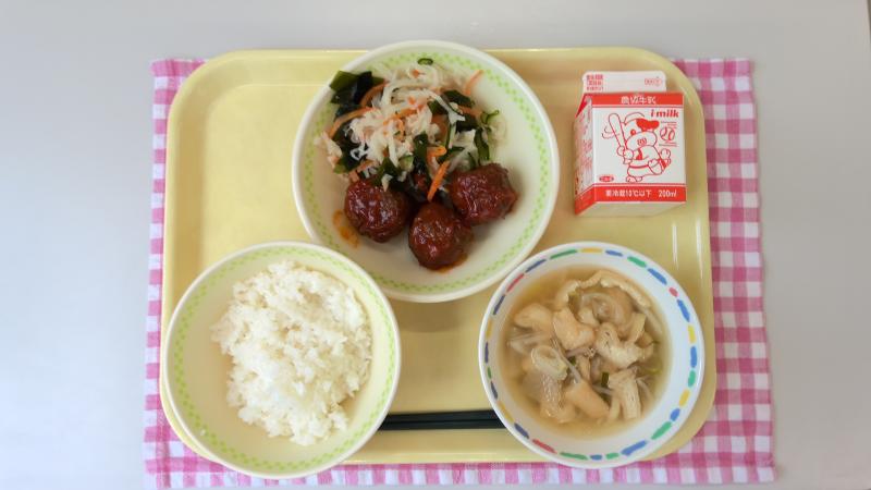 ごはん 肉団子ケチャップあん 切り干し大根の和え物 みそ汁 牛乳