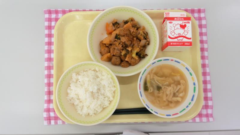 ごはん 肉団子の甘酢がらめ 白菜のみそ汁 牛乳