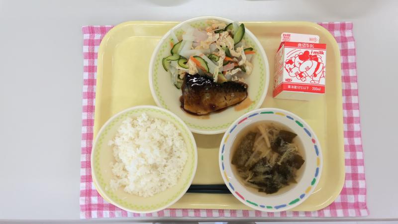 ごはん さばのしょうが煮 大根のごま酢和え みそ汁 牛乳