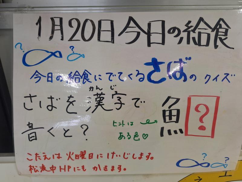 今日はさばに関するクイズを給食メモにかきました。