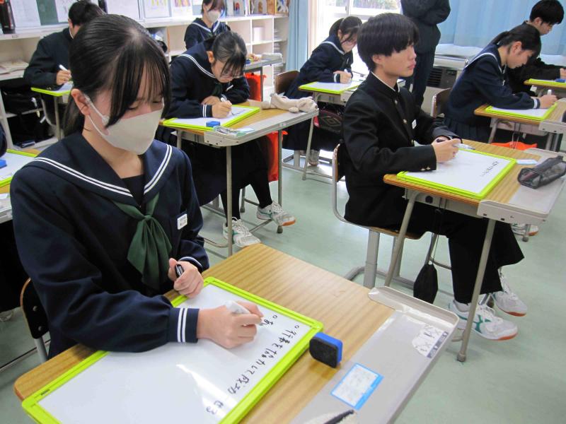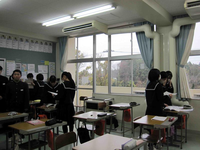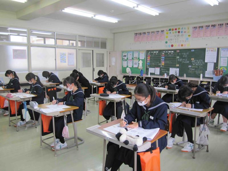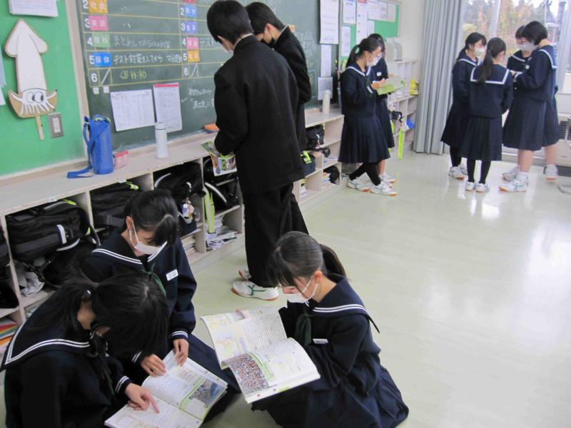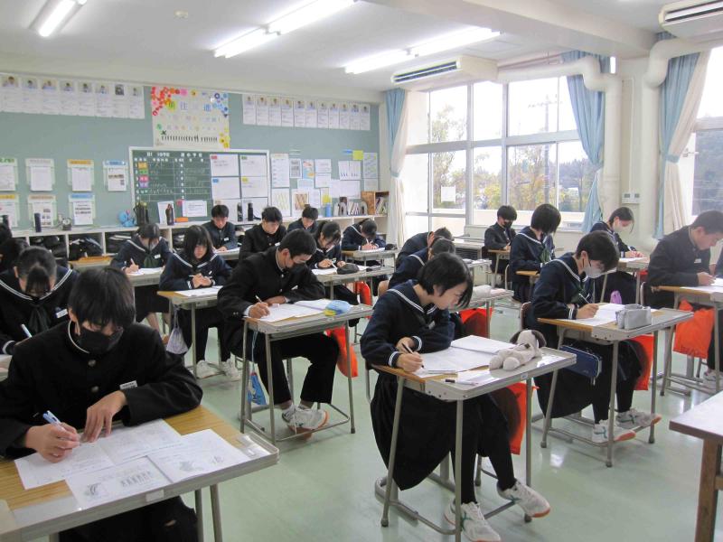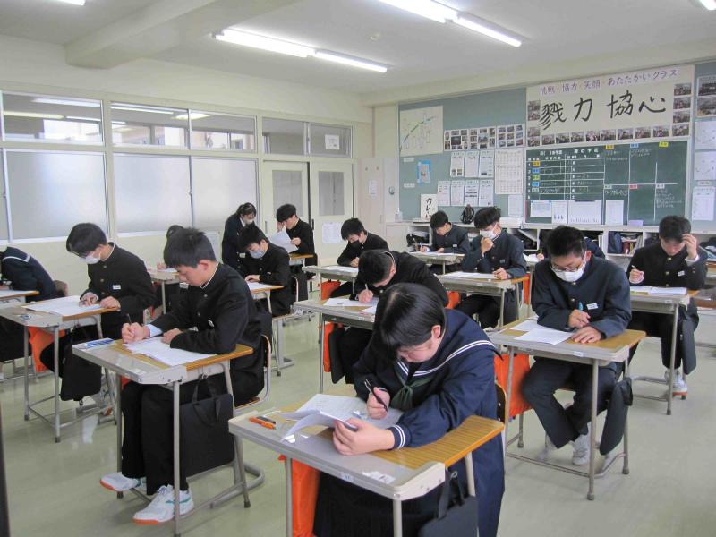 今日から2学期期末テストを行います。26日から1週間、テスト前勉強期間とし、各自取り組んできました。普段の授業での学習の積み重ねはもちろん、その復習をしっかりと行うことがめあての1週間でした。メディア時間を調整して、学習に取り組むことも大切です。生活時間を自分で調整する力を身につけ、成果につながる3日間にしてほしいと思います。
