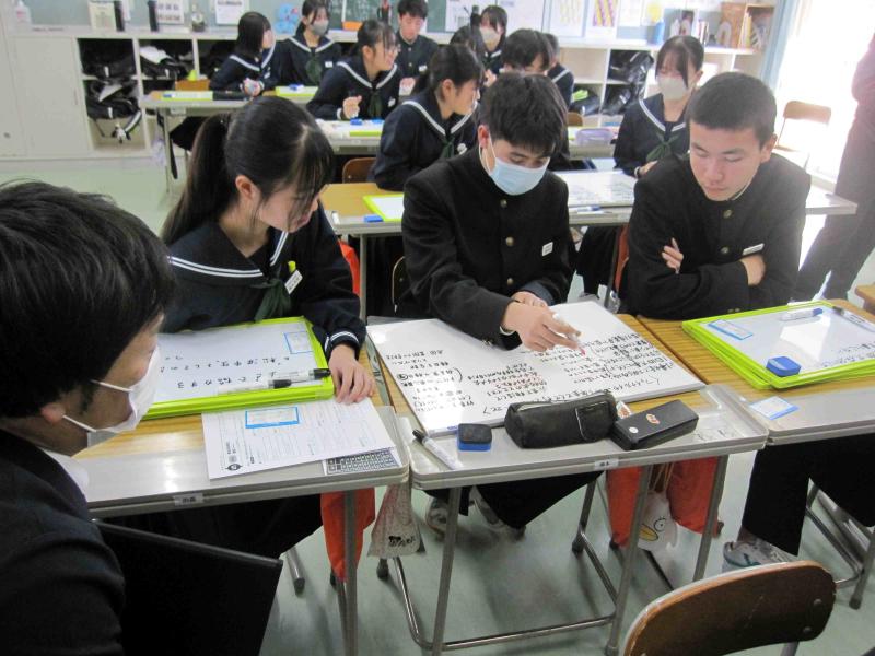 10月に引き続き、ホワイトボードミーティング® の横山先生を講師にお招きし、ファシリテーション研修を実施しました。今日は、2年生が「ファイナルイヤーの3年生としてやっていきたいこと」について考え、話し合いました。横山先生から声掛けや励ましの言葉をもらいながら、聞き手は質問に沿ってファシリテーターとなり、考えを引き出し、話し合いを活発に進めていきました。また、職員も「学校研究」をテーマに研修会を実施し、とても充実した話し合いの時間を持つことができました。明日も全学年で研修の予定です。