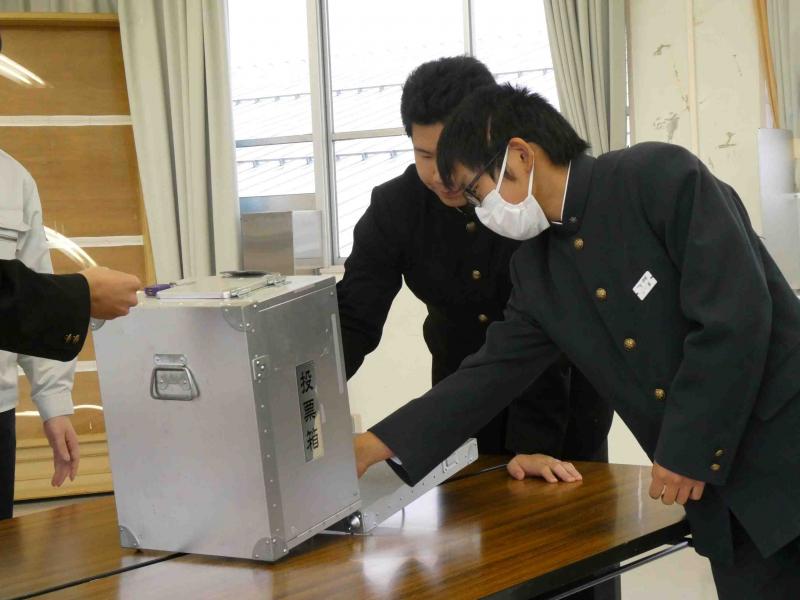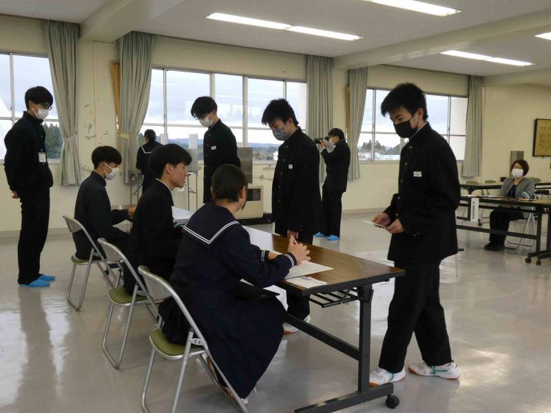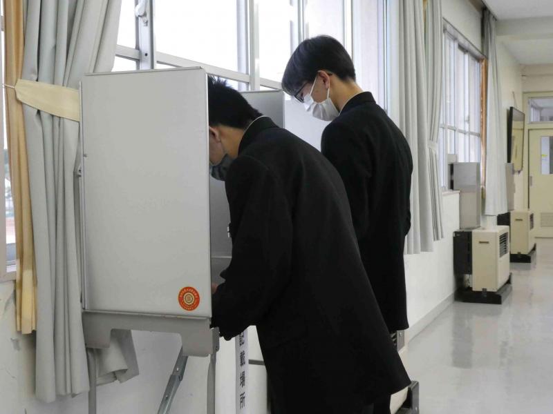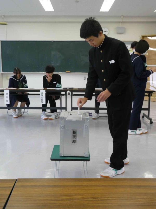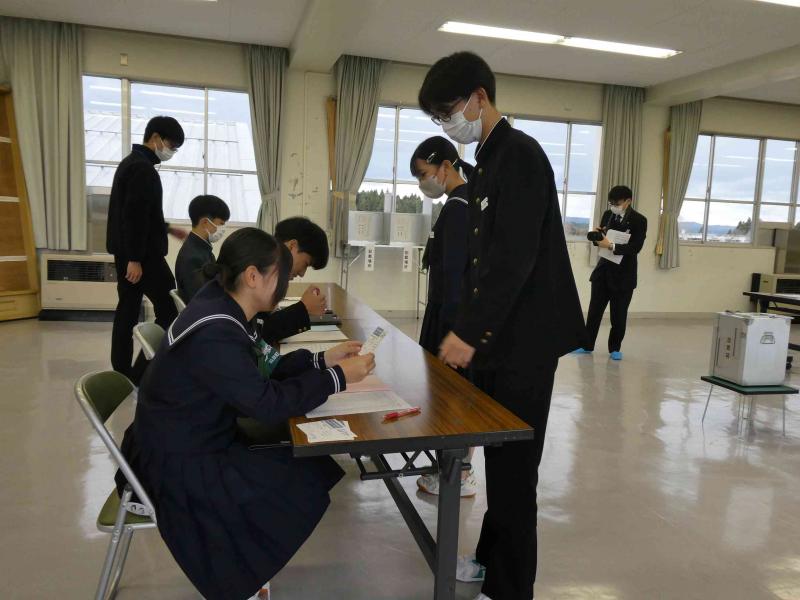 3年生は、社会科の授業で「模擬選挙」を体験しました。能登町総務課の方々や選挙管理員の方に協力していただき、選挙の大切さについてお話を聞きました。その後、実際の投票場と同じものを準備していただき(投票用紙も!!)、開票作業まで含めた活動をしました。3年後には選挙権を得る生徒たちにとって、貴重な体験となりました。