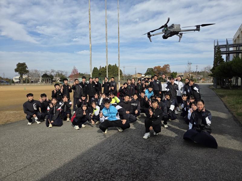 松波中学校のグラウンドで、ドローンを使った上空からの撮影会を行いました。