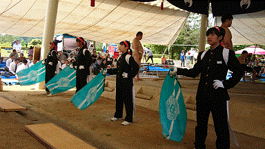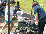 選手の熱い戦いに拍手です(観戦するお年寄りの介助ボランティアも行いました。)