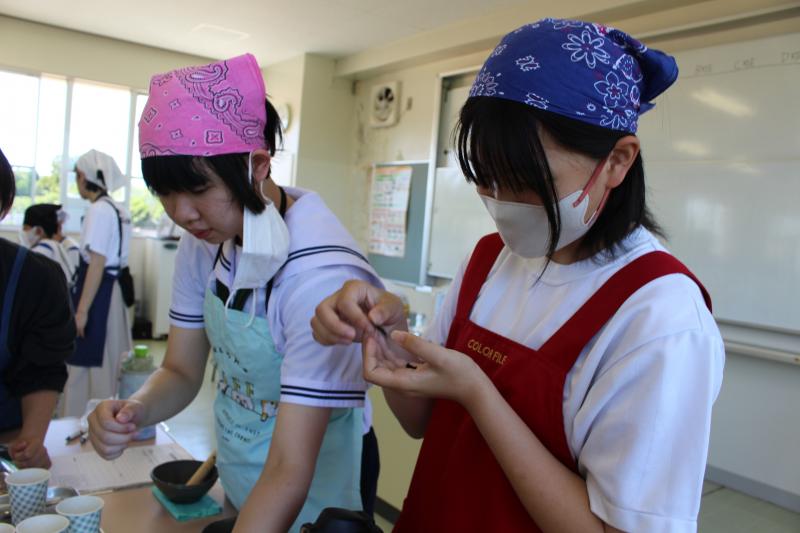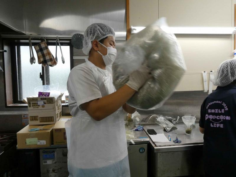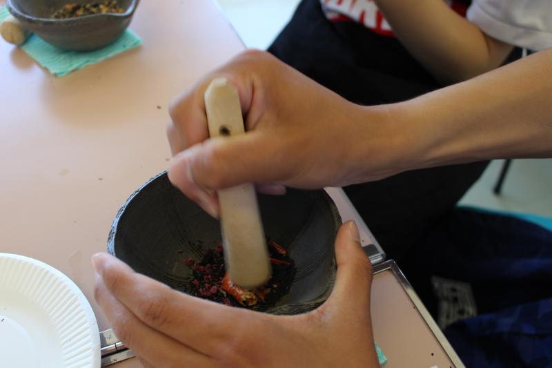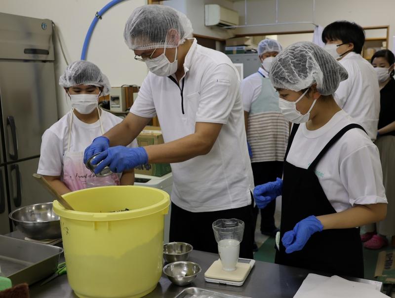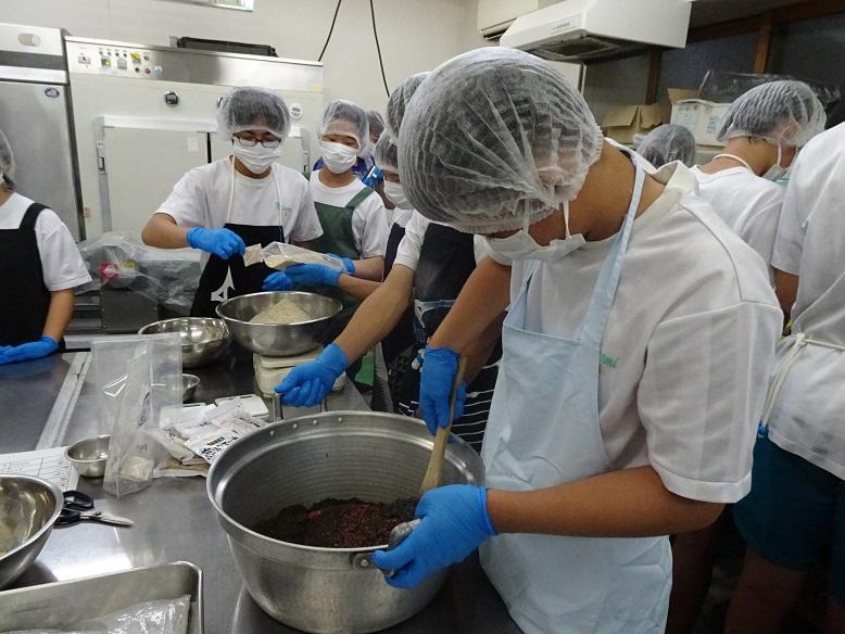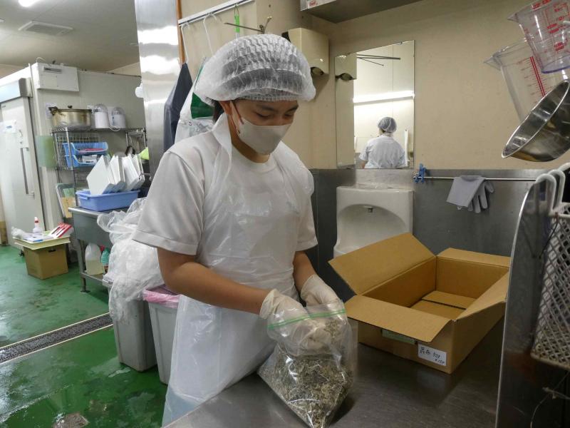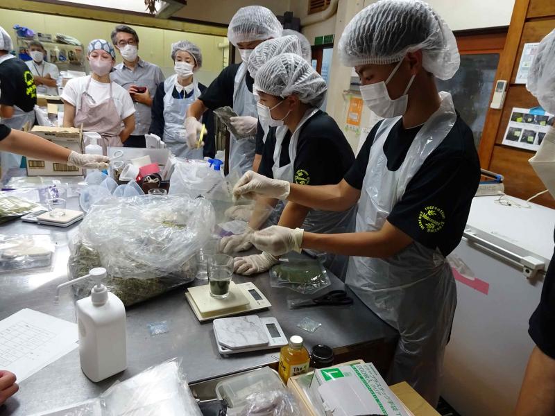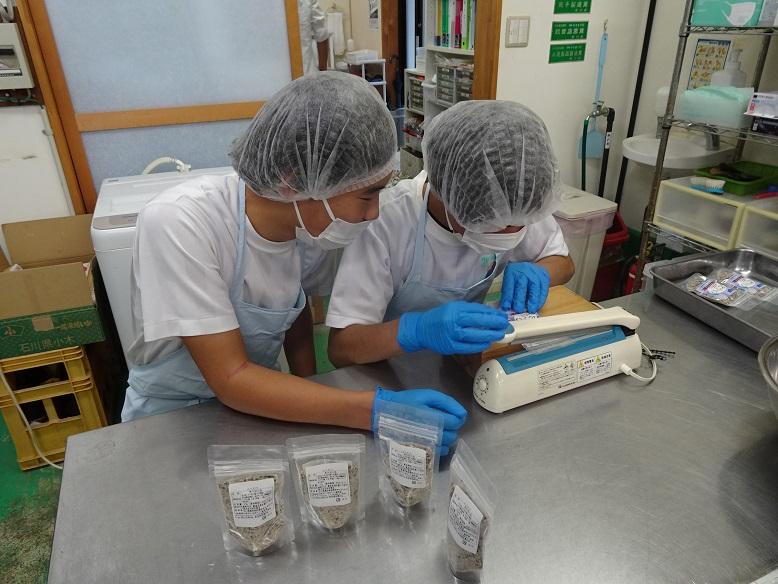 自分たちで考案したレシピを基に、材料を調合し、袋詰めを行いました。
