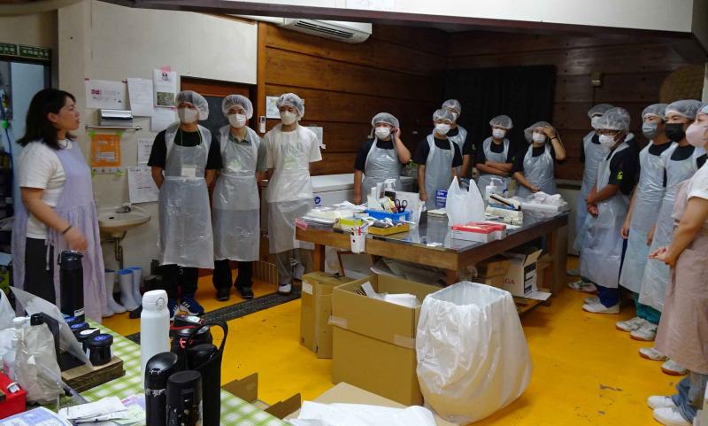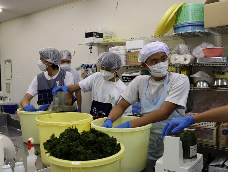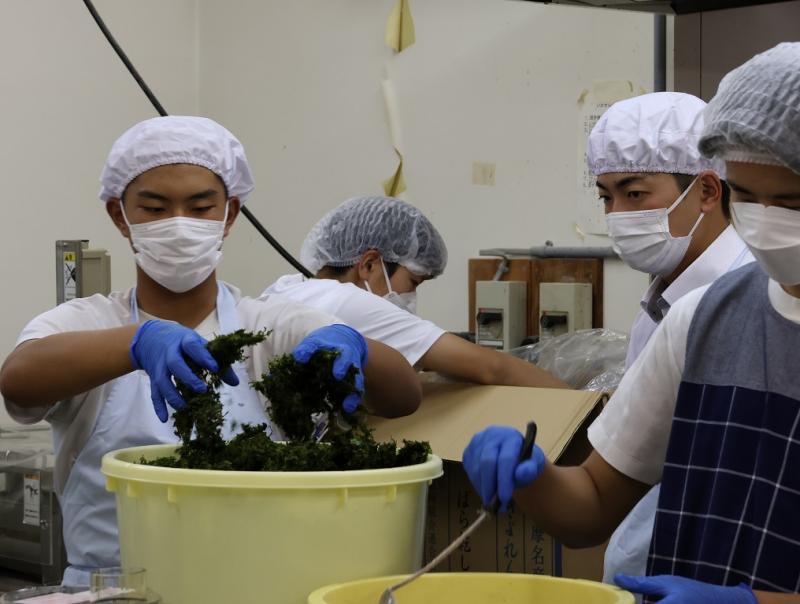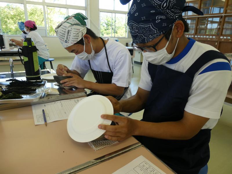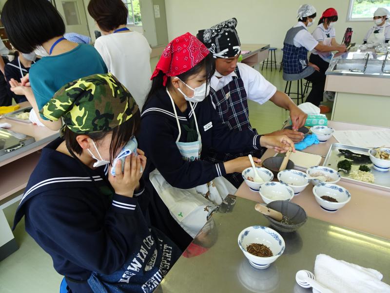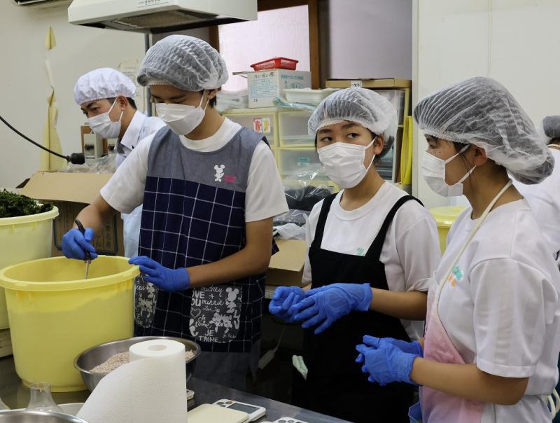 9月25日(木)の午後から、能登町笹川にある「ひらみゆき農園」の加工場で、(有)大脇昆布の大脇さんと能登里海教育研究所の能丸さんのご指導のもと、ふりかけの製造を行いました。