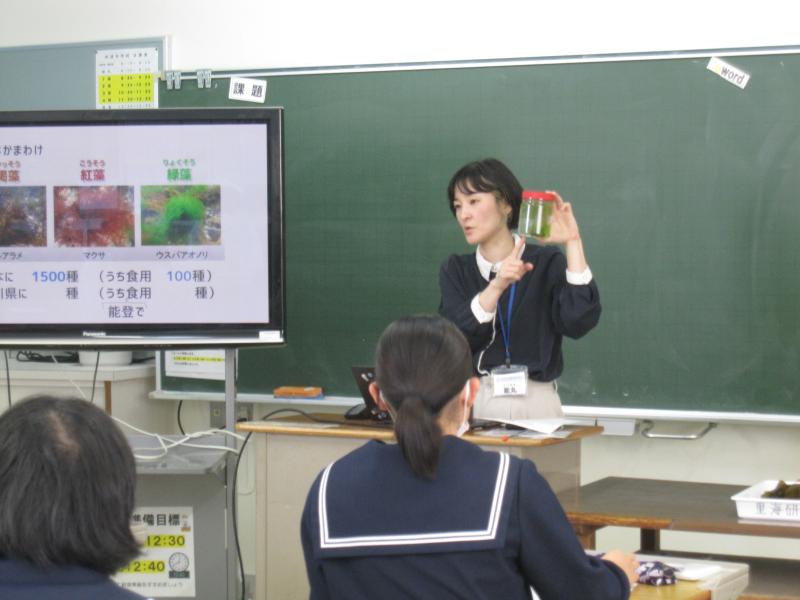 能登町では海洋教育を推進しており、本校の3年生は「海を活用する」をテーマに学習を進めています。今年も、地元の海産物を使って「ふりかけづくり」にチャレンジすることに決まり、能登里海教育研究所の方々やフードコーディネーターの方に協力していただきながら活動を進めていくことになりました。今日は、里海研の方から能登の海のことや海藻について、フードコーディネーターの方から食品を計画・販売するまでの仕組みについて、これからの活動に大切なことをたくさん聞くことができました。今年の「のとかけ」は、どんなふりかけになるのか?これから、たくさん意見を出し合って決めていきます。乞うご期待!!